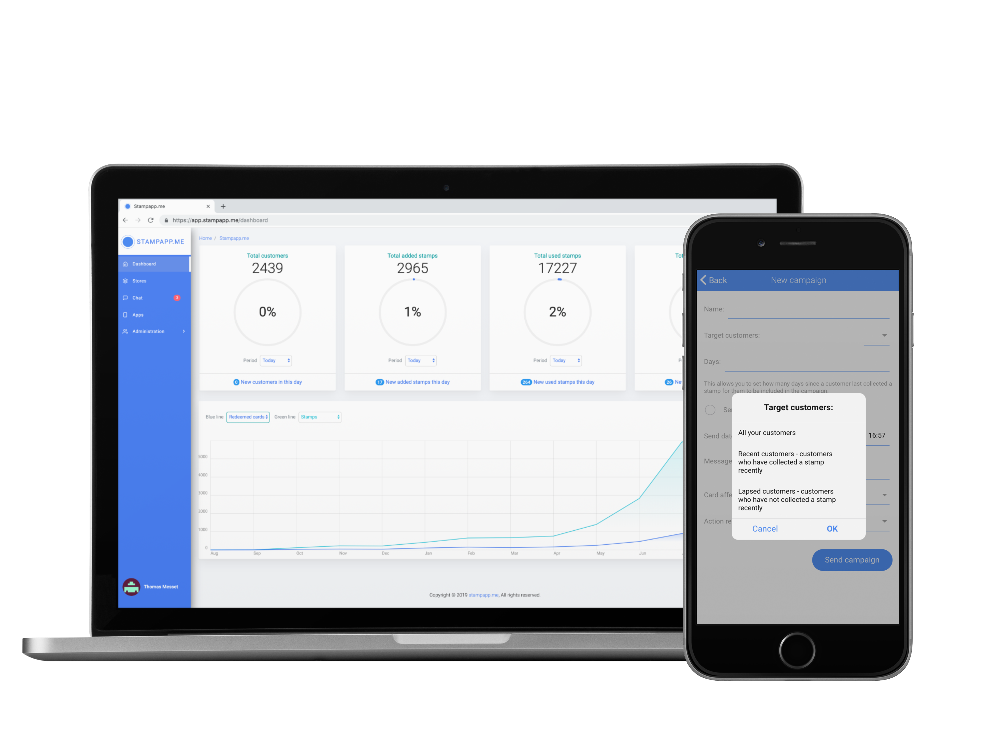 Manage cards, offers, menus and orders easily online and see how your doing